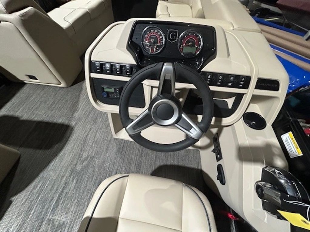Options: Captains chair upgrade, Extreme steering with tilt wheel, Lakeport plank full flooring, Low band carbon graphics, Mid body sage graphic, Midnight package