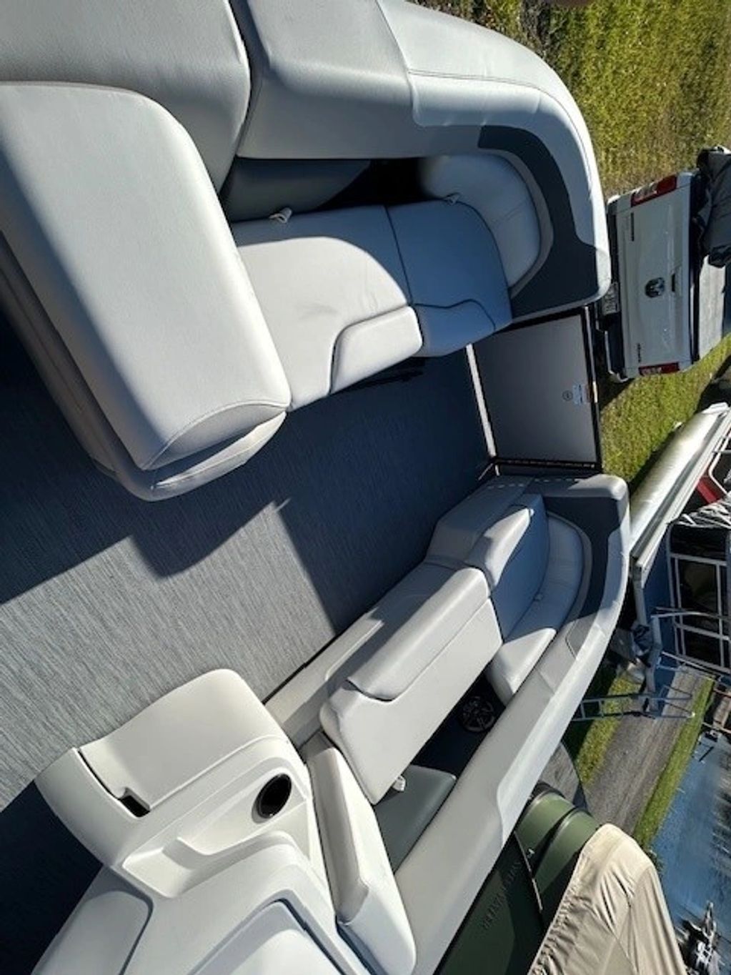 Options: Low band black graphics, silver matte rail skin smooth, Captain's chair upgrade, swivel, slider, reclining, fold down arms w/ 10" fixed pedestal. Depth finder / water temp readout, Extreme steering w/ tilt wheel.